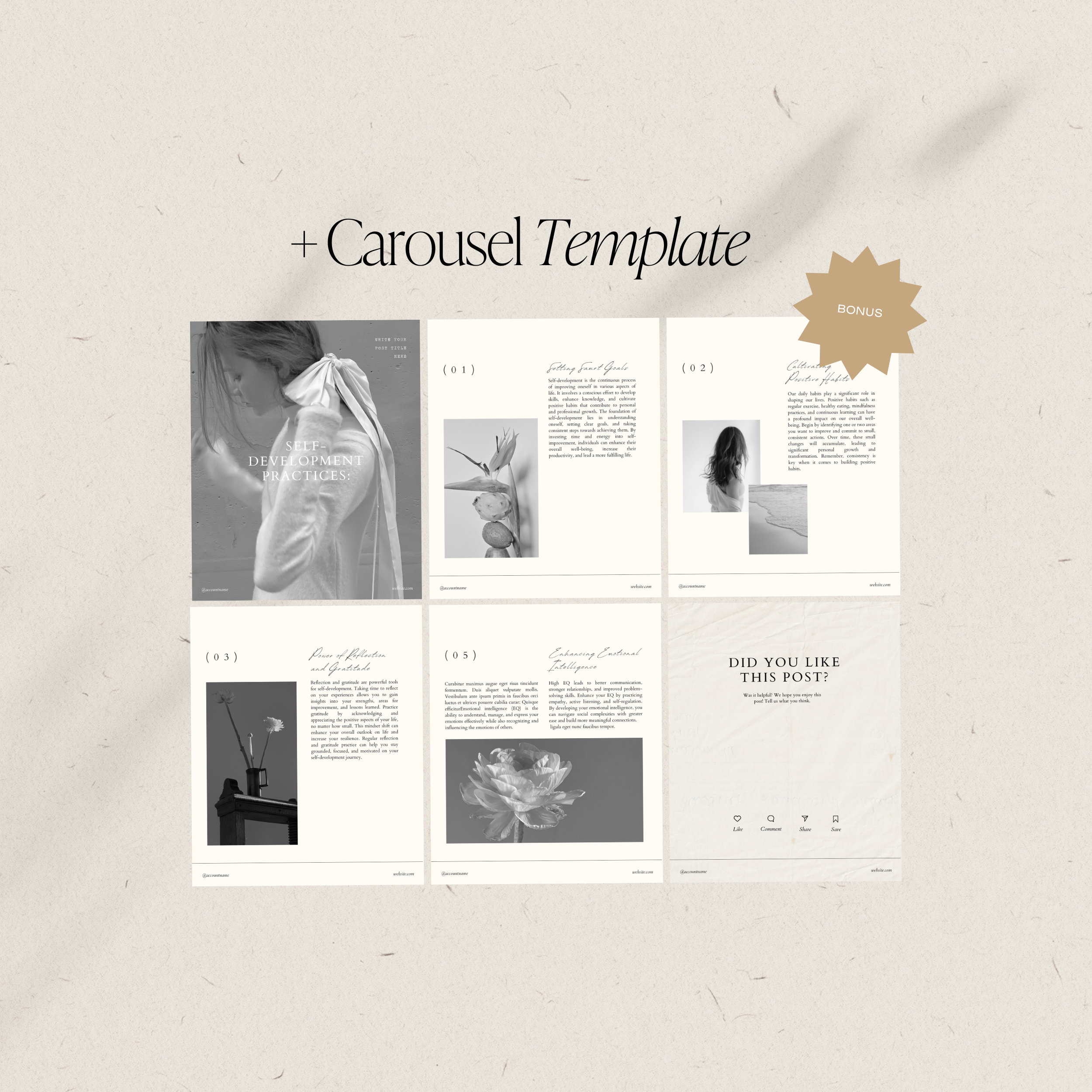 Pearl Instagram Templates Pack is a collection of aesthetic, minimalist templates designed to elevate your social media presence and boost growth. Perfect for influencers, bloggers, businesses, and creatives. The Pearl templates pack consist of 30 posts, 30 stories, and 1 carousel templates (with 7 slides), offering a seamless way to enhance your Instagram feed and stories.