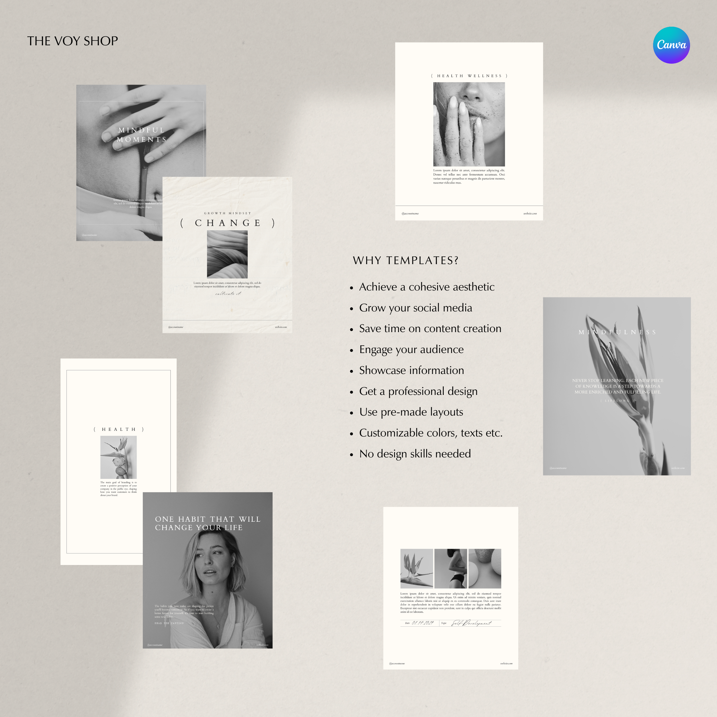 These are pre-designed, customizable templates made in Canva that you can use to create cohesive and visually stunning Instagram posts, stories, or reels.