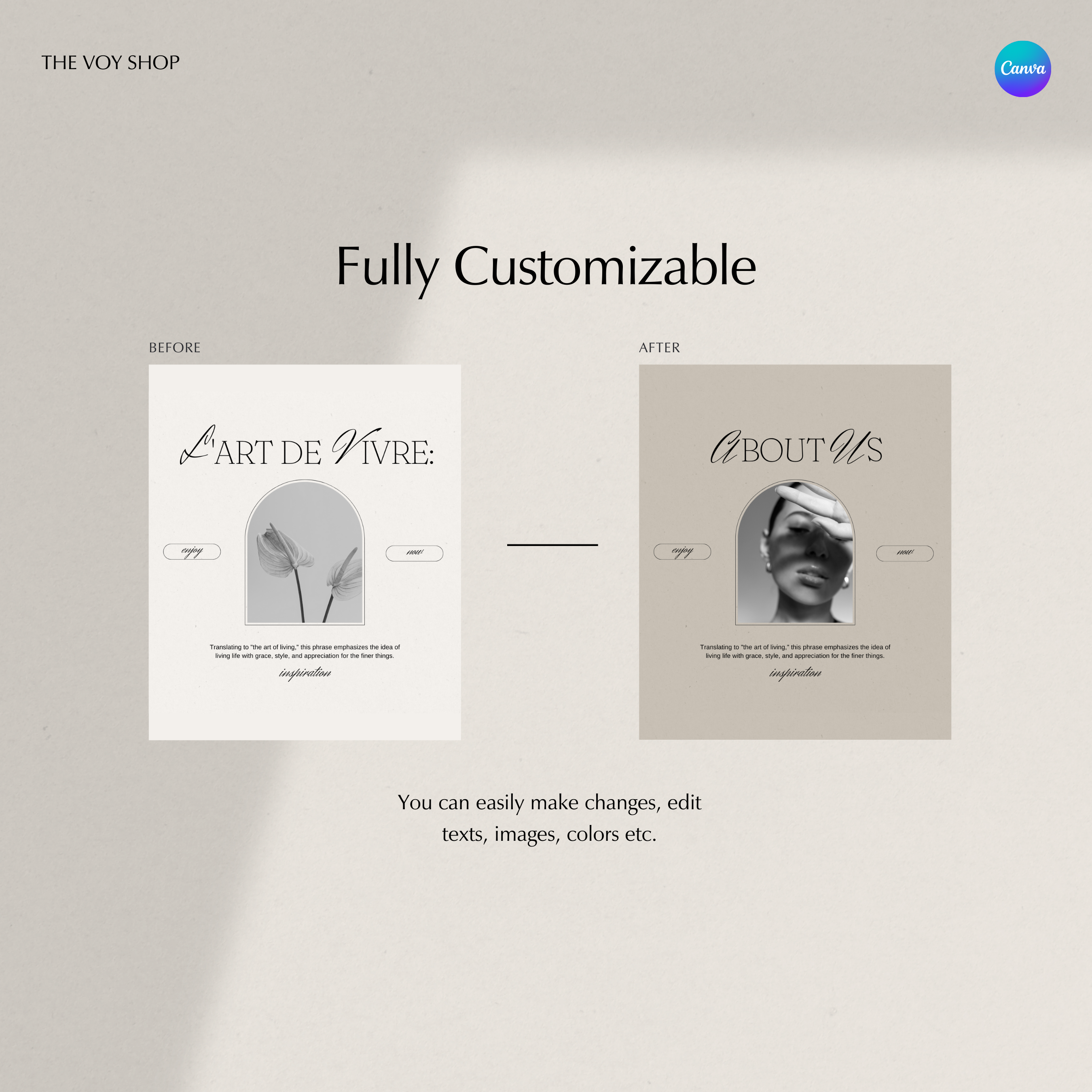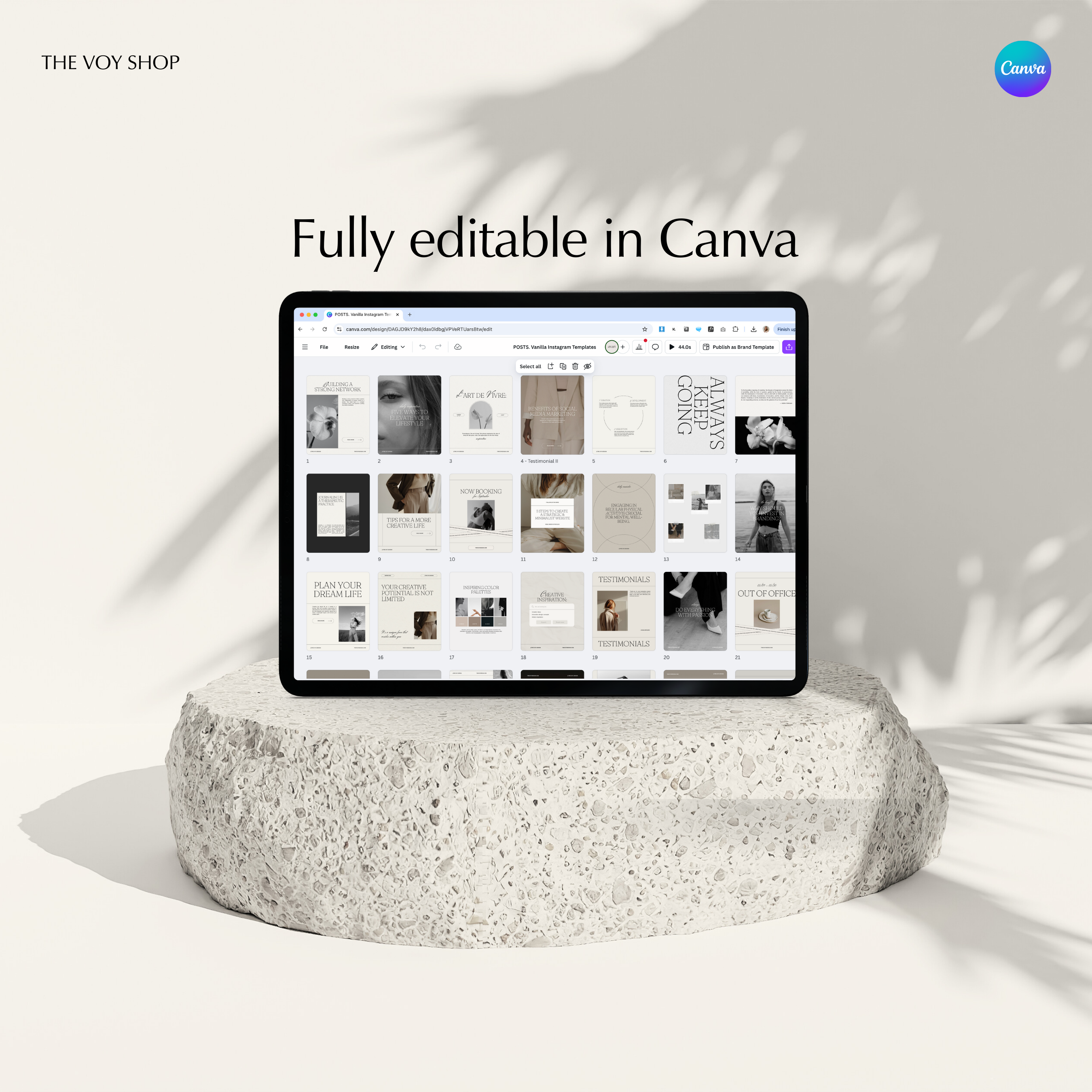Vanilla Instagram Templates Pack is a collection of aesthetic, minimalist templates designed to elevate your social media presence. Crafted with simplicity and elegance in mind, these templates are not only visually appealing but also incredibly easy to use and edit in Canva.